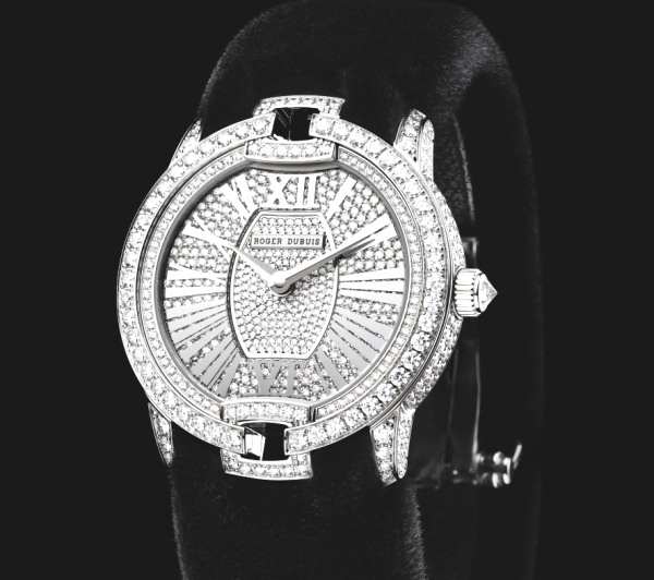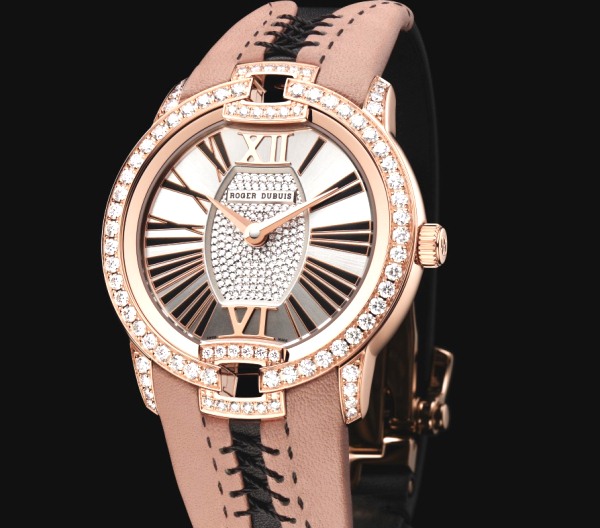 今年羅杰杜彼的另外一個重點,就是Velvet Haute Couture高級訂製腕錶三部曲,以三款具有獨特錶帶設計的女錶,爭取更多女性消費者的青睞。而本款腕錶的錶帶便是以女性的緊身馬甲為概念,演繹性感的曲線。錶款搭載RD 821自動上鍊機芯,限量發行88只。