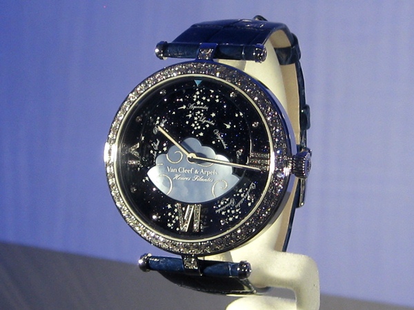 VCA梵克雅寶在本次錶展中,推出這款全新的詩意複雜功能腕錶。它可預測全年每個月分的平均流星數量,具有流星樣貌的砂金石玻璃面盤,每年會旋轉ㄧ圈,可透過十二點鐘的三角時標來確認此時的流星群。