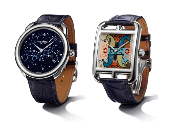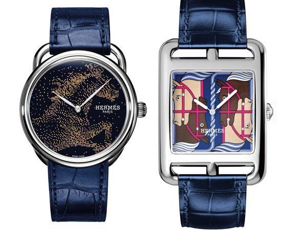 而在同年,愛馬仕也在Arceau系列中,發表了傳奇之馬大明火琺瑯腕錶與小馬大明火琺瑯腕錶,這兩款腕錶的面盤圖案,分別來自於絲巾與領帶。其中傳奇之馬使用古老的鑲金琺瑯工藝,它首先須在K金面盤上,塗滿深藍色琺瑯,再經由1100度以上的高溫燒製,然後經過三次的反覆燒製,才開始將金沙鑲嵌在琺瑯之上,透過15次的透明琺瑯燒製與逐步加入1400多顆的金沙微粒,方能完成這款奔馳在夜空中的馬匹圖案。