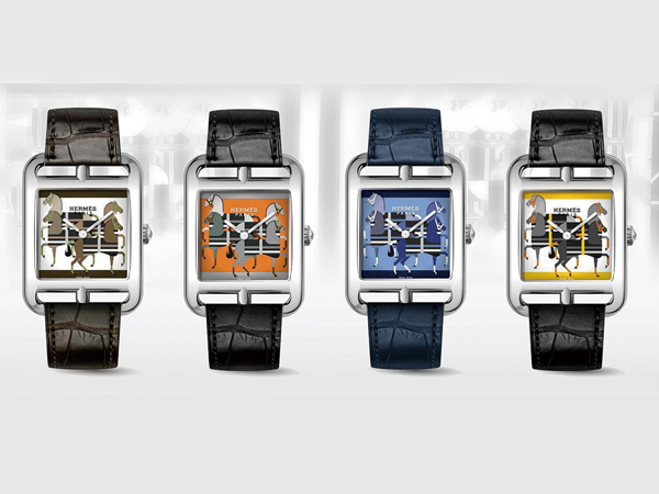 接著,愛馬仕在2010年推出了更為複雜的Cape Cod四馬戰車大明火琺瑯腕錶,錶款的面盤圖樣,同樣是取自於愛馬仕絲巾,不過製作的過程卻繁複許多,因為它採用了掐絲琺瑯工藝,以及部分填入琺瑯與彩繪琺瑯技術。