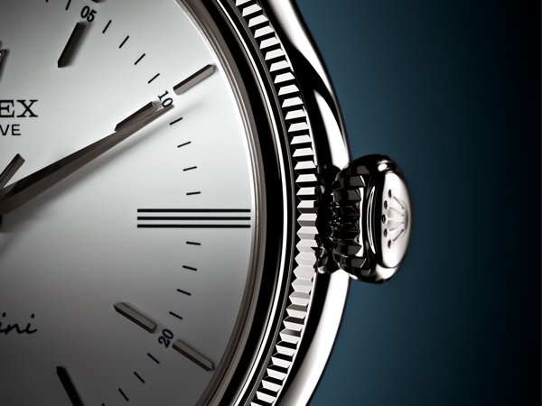 圓拱形的錶殼底蓋具有三角坑紋,是旋開或鎖入底蓋時,不可或缺的設計;如同喇叭外觀的旋入式錶冠,除了彰顯Cellini系列的精緻美學,另外也確保錶款擁有50米的防水性能。新款的Cellini系列,部分錶款的面盤採用 "Rayon flammé de la gloire" 放射紋,由中央向外延伸的線條,與三角坑紋錶圈完美結合。除此之外,錶款的指針與立體時標,採用與錶殼相同的貴金屬材質,具有優異的抗氧化功能,能確保指針與時標的光澤與美觀。