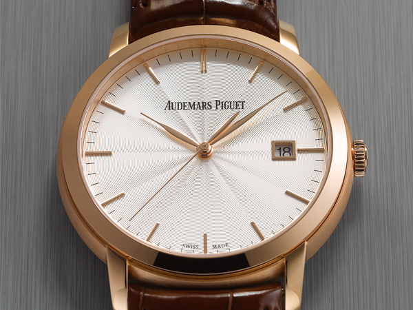 另外,愛彼採用無調整禁區設計的日期瞬跳結構,透過複雜的日期輪設計,在銅質的齒輪主體上方加裝棘爪,而下方加裝彈簧,可提升推動日期環順跳的力道。因此使用者在晚上八點至凌晨四點時,也能調整日期功能,而不會損壞日期結構。
