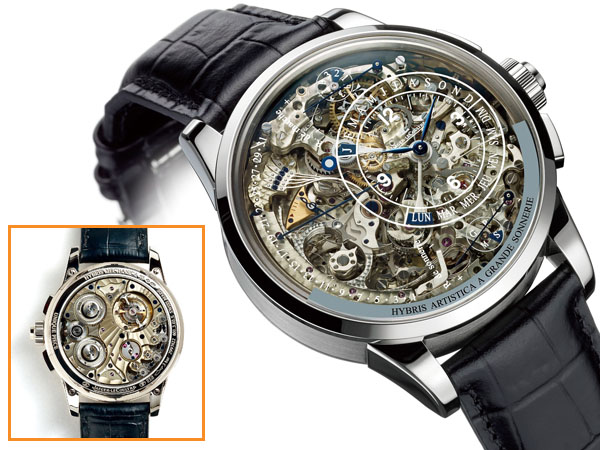 積家旗下最複雜的大自鳴款式Duomètre à Grande Sonnerie,改款重點在使用了透明的藍寶石水晶面盤,使下方182機芯的機械結構一覽無遺。