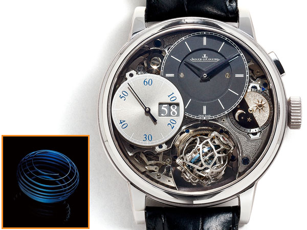而此款是積家利用自身最擅長的多複雜功能組合方式,耗費五年時間開發,使26種功能置入182大自鳴機芯,包含大自鳴、鈦合金框架陀飛輪、瞬跳萬年曆、月份日期逆跳顯示、跳時、走時自鳴動力儲存等多樣功能,內部更包含1,300枚零件、13項專利。