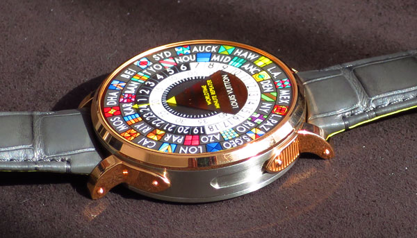 在原有的Escale世界時間上加入複雜的三問功能是很困難的事情,更特別的是他的三問報的是原居地的時間,而不是當地時間,這樣與眾不同的設計,只有不受傳統思維制約的品牌才做得出來。調校的時候需先確認三問報時的時間,之後將城市名稱與當地時間調到與報時相符的時刻,這時候所有的城市名稱與個地時間都會相對應,需要轉換時區設定新的當地時間時,城市名稱環與小時刻度環連動,當12時位置出現正確的城市名與當地時間後,就完成設定。功能複雜卻便於操作。