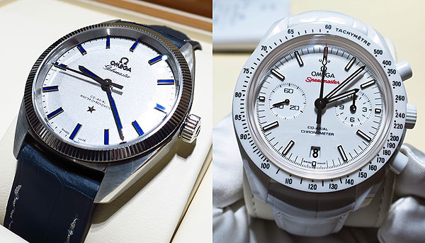 歐米茄在巴塞爾鐘錶展中屬於新品極多的品牌,2015發表的新品就有190款,數量驚人,當中可以看出超強防磁性能的至臻同軸機芯(Master Co-Axial)擴大使用,未來有成為旗下錶款主流機芯的趨勢。此外,在開展前夕發表的Globemaster系列的中文名稱為尊霸,現場還公布了限量352只的鉑金款式,錶盤上的指針與時標接內填藍色琺瑯,頗有古意,背面的天文台標記也升級為琺瑯工藝。同時亦有多款超霸問世,以白色陶瓷打造的White Side of the Moon腕錶最為亮眼。