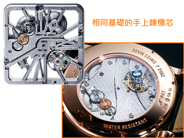 不過這枚機芯的潛力其實不止於此,在2010年推出的Rotonde De Cartier 跳時腕錶,它所採用的9905MC手動上鍊機芯,與用於Santos 100鏤空腕錶的9611MC與9612MC手動上鍊機芯,其基礎結構都是源自相同的機芯架構;只不過手動上鍊的款式,都減去了自動上鍊系統與自動盤,以及小秒針設計。因此,從當年的8000MC自動機芯的基礎結構,所衍生的款式竟然如此的多,其中包含了平行發展的手上鍊款式,這樣完整的錶款展示,想必能使大眾感受到CARTIER本身的深厚研發實力。
