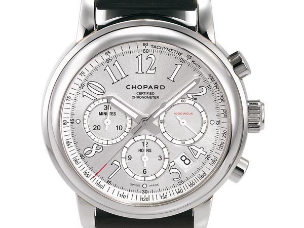 蕭邦長期支持的Mille Miglia千里賽車,是以古董賽車為參賽車輛的耐力賽,以此為靈感所推出的Mille Miglia系列,當然也要有古典精神才搭配。這款Mille Miglia Chronograph風味古雅,銀色面盤搭配測速器內圈,彷彿古董車的儀表板。 雖然蕭邦以女錶聞名,但對於男錶的機械工藝亦相當要求,這只計時碼錶通過C.O.S.C.天文台認證,能夠在不同環境下有較佳的適應性,並維持走時穩定。