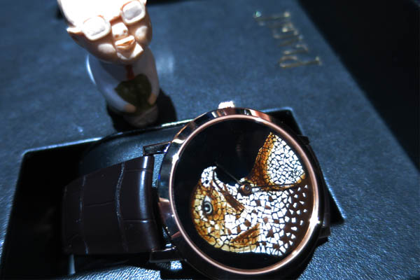 若有印象Pre-W&W時品牌所發表的大月相腕錶,那只是路線圖,今年30多只新作則更實際的已兩地的景致與代表物為題材。此次,伯爵首度引入了蛋雕漆繪以及羽毛拼貼。蛋雕不是隨便打碎蛋殼貼上就算,要先按圖切割,細膩拼貼,最後在適度上色。估計與馬賽克拼貼的邏輯神似,但執行細節則有所差異。