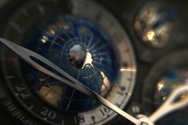 多款改款展現力與美,其中Villeret 筒狀游絲陀飛輪夜空限量版,獨特的醒目的筒狀游絲置於12點鐘位置,新的煙燻色面盤下方左右各有立體的南北半球,彩繪處理精緻細膩,重點啦!這兩顆半球當然不是放好看,其實也是會隨著緩緩運轉,如果地理邏輯好點的,真的可以世界時區一手掌握。