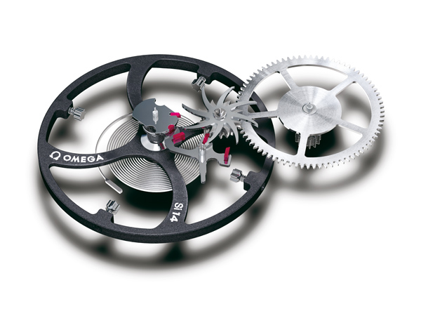 OMEGA最初僅將同軸擒縱機制裝於碟飛系列上,實驗意味十足。機制最大好處,在於有三枚寶石棘爪的擒縱叉是以推動動作而非傳統槓桿擒縱的滑動運作,彼此接觸面積少,令擒縱叉上的寶石不用點油,能延長腕錶的保養時間。而且動力是直接透過擒縱輪傳遞到擺輪,因此運作上會更有效率,也更穩定,能為腕錶帶來更好的精準度。由於裝載同軸擒縱機制的碟飛錶款反應良好,因此OMEGA進一步地將旗下所有錶款都逐步換用同軸擒縱機制。