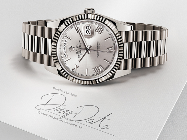 在2015年的瑞士Baselworld巴塞爾鐘錶展,勞力士推出全新40mm的Day-Date錶款,是世界上首款可在面盤上顯示日期與星期窗的錶款,相較於品牌現行的Day-Date是36mm的尺寸,新款的Day-Date錶款一舉將尺寸擴大4mm,直逼Day-Date II錶款的41mm,只使用貴金屬製造,深受世界各國元首的喜愛。錶款搭載的3255自動機芯,更是廠方近年來最重要的新款機芯,勞力士將其運用在Day-Date錶款之中,代表此錶款對於勞力士具有重大的意義。