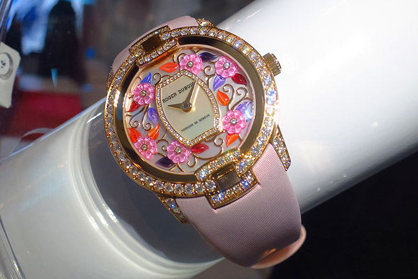 在Pre SIHH便出現的Blossom Velet,融入極度適合女性的花卉元素。透過大明火琺瑯、貴寶石雕刻拼貼...等技巧,創造出多彩可愛,又活潑動人的面盤樣貌,。