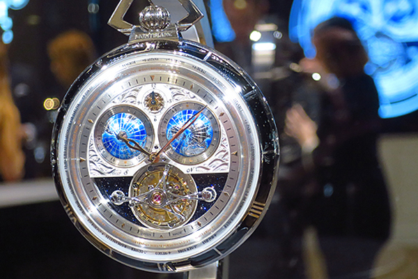 此款筒狀游絲陀飛輪110週年紀念懷錶,是品牌今年發表的另一款懷錶。原則上就是先前同型腕錶的懷錶版本。除了時間指示外,面盤左右兩枚精巧的南北半球儀則是世界時區與日夜顯示。此外面盤細膩的刻上海波浪,正呼應筒狀游絲是早期航海時代航海的重要結構。限量8只,參考價NTD 9,319,000