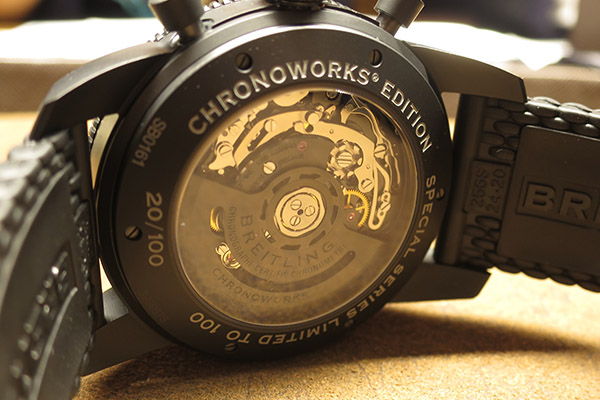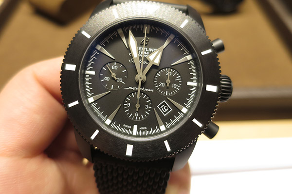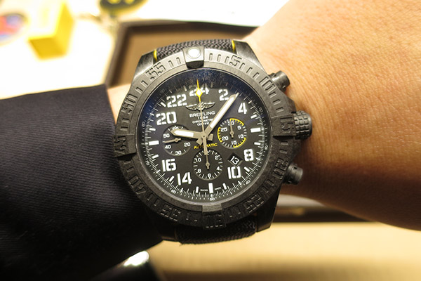 Avenger系列推出也是黑黑的Avenger Hurricane,超大尺寸50mm。內裝新自製機芯B12。重點是,錶殼所使用的就是前述提及的Breitlight,這是以Polymer為基礎所發展出的新材質,不含金屬成份,所以囉,金屬殼的弱點在此是不存在的。重量比鈦輕上3.3倍。不過,當然金屬的好處當然也沒有,例如,不能拋光。防水100米。不知道是否與材質耐受度有關?參考價大約NTD 296,900。