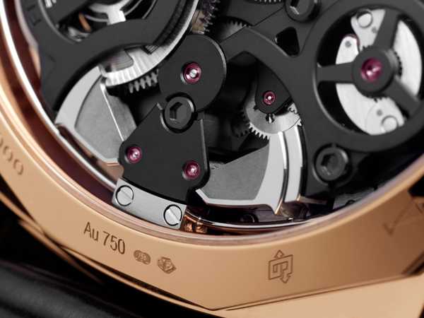 該枚腕錶內部搭載的P2005/MR手動上鍊機芯,雙發條盒動力儲存為四日,總零件數達633枚,是目前沛納海最複雜的機種,主要以P2005陀飛輪機芯為基礎,再加上自製的三問結構,使兩大功能成功整合在同一枚機芯中,進行組裝時,製錶師會先將主體陀飛輪機芯完成,再逐步加入三問組件,光是零件打磨、組裝、三問音質測試等等就需要三個月的時間。