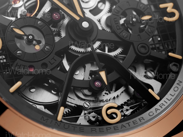 既然要創造足夠音量、音質,沛納海的三問音簧除了採用專屬特殊合金,三條音簧共兩個固定底座(Monobloc),是與機芯一同固定在錶殼內部,所以當音鎚敲擊時,音簧底座會與錶殼一同共振,產生較大的音量。
