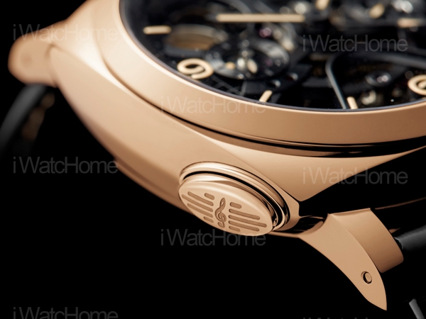 操作的方法很簡單,先轉動錶冠,將錶冠上的黑色標點轉至正面,此設計即是錶冠的安全裝置,如果不轉至正面,該切換按把就不能操作。接著按下錶冠上的按把,再從面盤九點鐘位置上的HT/LT(原居地時間/當地時間)觀察紅點落於哪個位置,即表示三問將報時的地區時間,最後按下錶殼左側、表面刻有音樂符號的按把,隨即啟動報時,HT報時的小時數字是根據第二地指針、LT報時的小時數字則根據時針。