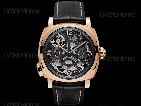 沛納海首枚三問錶現身! 世界首見可切換兩地報時的十進位三問 Radiomir 1940 Minute Repeater Carillon Tourbillon GMT三問報時兩地時間陀飛輪腕錶