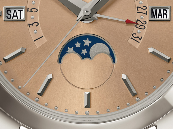 而回到前文所提的低調,許多品牌在處理“逆跳”時,大多會採秒、分之類的表現,讓錶主能更時常感受逆跳的視覺樂趣。但PP選擇了月份逆跳,並搭配“不”建議逆調時間的萬年曆機制。想要欣賞到錶款逆跳,就請等待每月一次的午夜剎那。等待,也是一種樂趣,錶王的從容態度,由此可見。