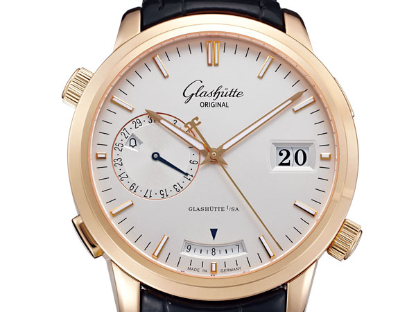 GLASHÜTTE ORIGINAL Senator Diary位於3點鐘的日期窗則是透過錶殼右側的按把及錶冠來設定。這麼複雜的腕錶,所搭載的Caliber 100-13機芯共由600個零件完成,其中響鈴模組就佔了340個。這款腕錶共推出玫瑰金、白金以及不鏽鋼三款,配上路易斯安那鱷魚皮錶帶,又美又有質感。玫瑰金款參考價新台幣 1,268,000。
