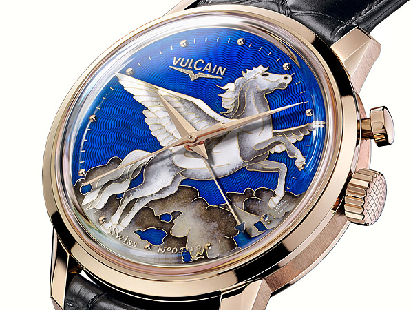 VULCAIN的蟋蟀響鈴錶也隨著時間不斷更新,包含了這款50S Presidents’ Cricket “Pegasus”。這款腕錶在中國農曆馬年時推出,並使用大名火琺瑯完成,只是小編看不出這只馬與中國馬年的關係,感覺比較像是會出現在希臘神話中的謬思所騎的馬。