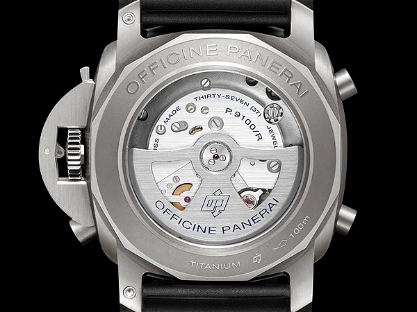 直徑47mm鈦金屬錶殼/時間指示、飛返計時與倒數計時設定功能/P.9100/R自動上鍊機芯,動力儲存72小時/藍寶石水晶鏡面、透明底蓋/防水100米/參考價NTD598,000
