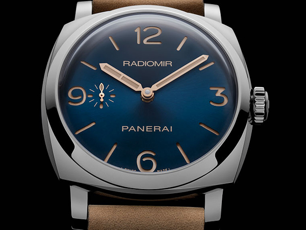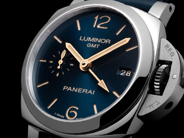 海軍錶起家的沛納海,隨著時尚演進,這次推出四款新款腕錶,每款皆將面盤以緞光潤飾(satine soleil)的金屬藍呈現,還能看到明顯的太陽紋,並在夏天佩戴十分清爽又亮眼。金色指針,覆上Super-Luminova塗層,三明治結構面盤,每款腕錶都配上塗上深藍漆的櫻桃木盒子。