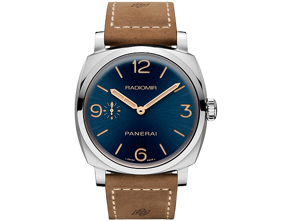 而在這一系列沛納海中,或許這款Radiomir 1940 3 Days (PAM00690)最有復古風格,沒有錶冠護橋,更讓腕錶增添了幾分古典。錶徑為這四款藍面盤中最大,足足有47mm,搭配不鏽鋼錶殼,搭載P.3000 手動上鍊機芯,具備快調小時功能,動力儲存為三日。PAM690限量500只,特別的是每只都搭配駝色皮錶帶,更增添了古典氣息,參考價約新台幣300,000。