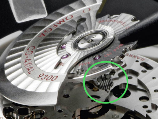 目前OMEGA最引以為傲的技術就是—同軸擒縱裝置,這項技術自1999年正式推出以來,至今已經超過16個年頭。9300機芯同樣也採用這項專利,但是其結構與當初最早推出的2500自動機芯已有所不同。