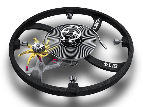 9300機芯在面世之初,就使用了矽材質(Si 14)游絲,這是繼8520系列女用自動機芯後,第二個全系列使用矽游絲的機芯,也讓OMEGA成為業界少數大量使用矽游絲的錶廠,且價格仍在合理的範圍內。由於矽屬於非磁性材質,因此完全沒有受磁的可能性,加上使用精密的半導體技術來製造與切割游絲,所以游絲結構具備高精密度,同時免去人為的失誤,將游絲品質控制在最佳水準。