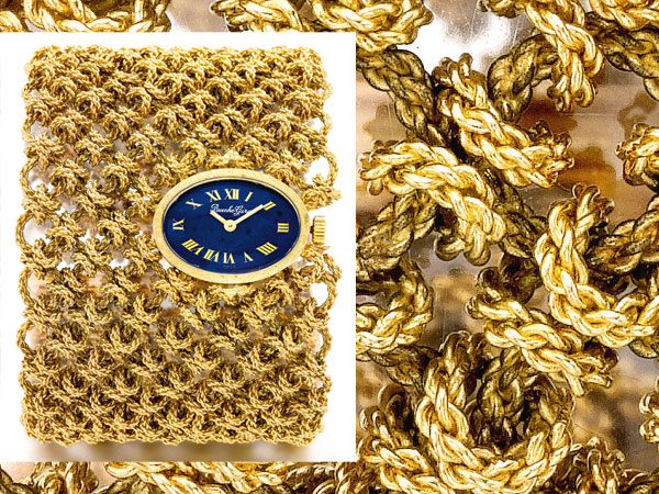 其他附註:寬53mm 18K金材質,約1970年製,手動機芯。青金石面盤,黃金織網錬帶。