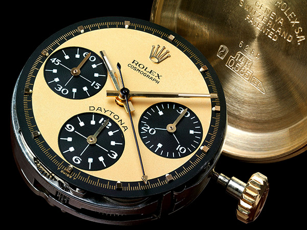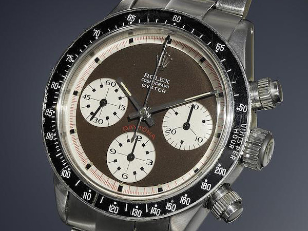 同樣在2016年PHILLIPS拍賣會上,這只Rolex Ref. 6263 Cosmograph Daytona以2,049,771美金售出,這只迪通拿又被稱為RCO(Rolex Cosmograph Oyster),因為一般迪通拿上面的字母順序應該為ROC(不是中華民國呦),依序分別為Rolex,Oyster,Cosmograph,這只的順序可說十分罕見,加上咖啡色的熱帶面盤,再配上白底積算盤。這款Ref. 6263 迪通拿錶殼直徑37.5mm,727自動上鍊機芯,小針盤的方形時標也是一大特色呢。