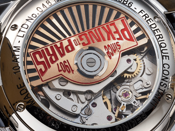 康斯登成為這項賽事的官方指定時計之後,在Vintage Racing系列推出Peking to Paris計時腕錶,從正面幾乎察覺不出它是和賽事有關的一款腕錶,直到翻到錶背看見“PEKING TO PARIS since 1907”,才讓賽車基因藉由自動盤凸顯出來。