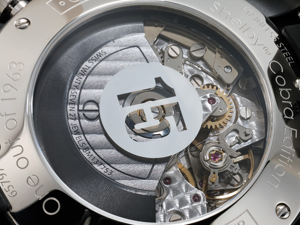 透明底蓋上的15是當年那部眼鏡蛇賽車的編號,錶背外圈上“One out of 1963”則是年份的紀念以及限量支數的符碼。