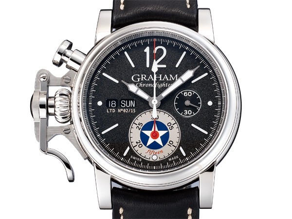 有超大計時按把的Chronofighter,是格林漢在千禧年初所推出的設計,霸氣但又古典優雅的樣貌,極為搶眼。而形式特別的大按把,藉由槓桿定律,較之一般有更好的操控性,即便戴著手套也能夠輕鬆啟動無誤。