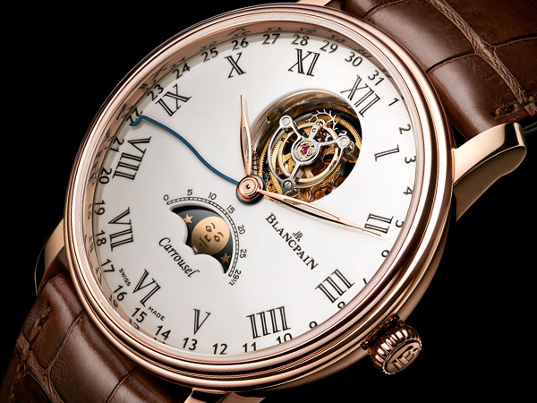 另外像是寶鉑BLANCPAIN的 Villeret Carrousel Moon Phase腕錶則是將製錶大師Vincent Calabrese於2008年替寶鉑所打造的卡羅素與月相結合,雖然兩個裝置沒有直接關連,不過同時出現在面盤上方與下方,也可說在鐘錶界中僅此一款。