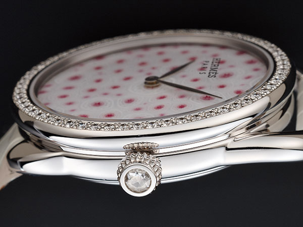 而愛馬仕濃厚的人文氣息更是品牌之所以能獨樹一幟的核心,以製錶的領域來說,最能彰顯人文面向的關鍵,除了設計之外便是工藝了,因此愛馬仕幾乎年年都有令人驚呼的面盤工藝展現,除了琺瑯、金雕等當家技法,千花水晶也是愛馬仕和旗下SAINTLOUIS聖路易水晶大廠合作的成果。