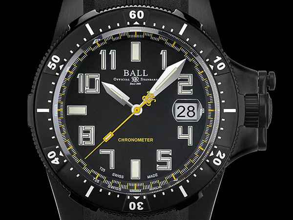 這款BALL WATCH 的Engineer Hydrocarbon Black腕錶,錶殼直徑42mm,黑色DLC塗層鈦金屬錶殼,搭配防刮陶瓷錶圈,使用專利的錶冠護橋,保護錶冠減低碰撞的損傷。另外此錶搭載SELLITA SW 200自動上鍊機芯,防水達300米,真的很適合潛水呀!