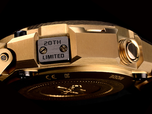 MR-G Gold Hammer Tone腕錶10點鐘位置錶側顆有20th LIMITED,也就是紀念G-Shock旗下熱門錶款MR-G誕生20周年。看來2016年或許對腕錶界來說是個轉捩點,可以很寒冷,但卻是許多重要錶款或是功能的里程碑,像是芝柏表創立225年,百達翡麗年曆發明20周年,再到G-Shock誕生20周年。或許2017年錶界能來個逆轉勝也說不定!(G-Shock都推出黃金款式了還有什麼不可能)