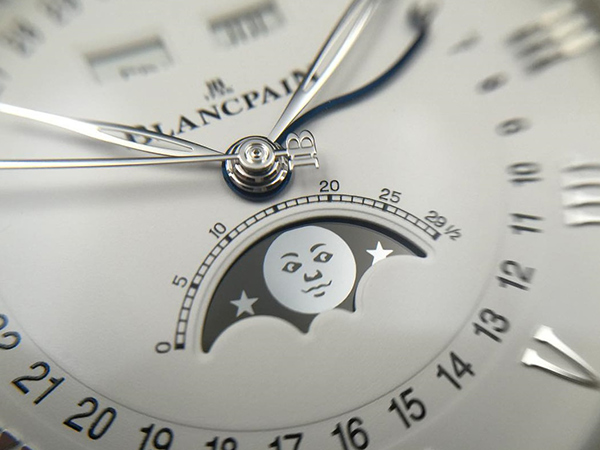 這款大師超薄萬年曆腕錶有黑色、銀色與米黃色面盤,搭配了不鏽鋼、白金以及玫瑰金。面盤上的小錶盤順時針方向分別顯示了日期、月份以及星期,最後在12點鐘位置以月相顯示作結束,巴頓型時、分指針與長三角形時標彼此呼應。