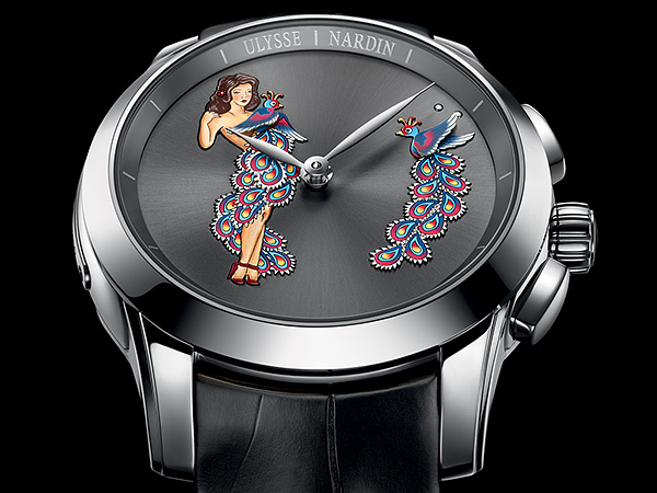 首次加入SIHH戰場的雅典錶ULYSSE NARDIN,前陣子亮相的《舞娘單問報時限量錶》似乎要用“美人計”擄獲錶友們的心。此系列共推出玫瑰金與鉑金兩款,不過面盤上的舞孃應該是同一人(旁邊的孔雀也應該是同一隻)。再啟動報時同時,面盤上的舞孃與孔雀也會同時舞動,至於畫面會如何,請自己進影片中觀看囉!