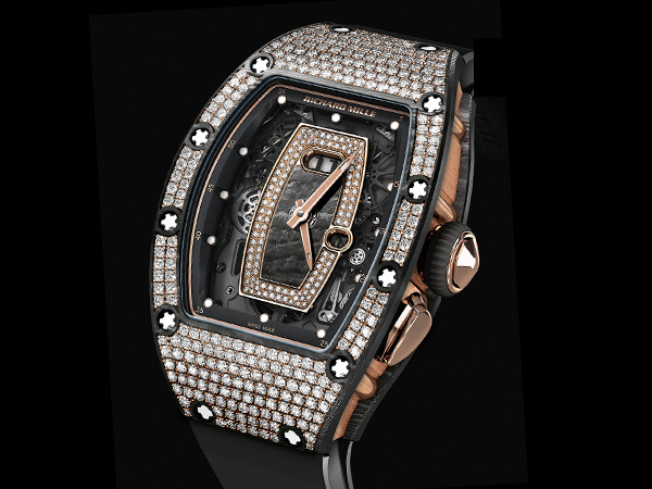 過去RICHARD MILLE所採用的特殊材質NTPT碳纖維主要使用於男錶,不過今年SIHH將首度使用在女錶中,搭配鑲滿鑽石的錶圈以及面盤上有如眼球的造型,感覺這顆魅惑的眼睛正吸引著到場賞錶的觀眾!