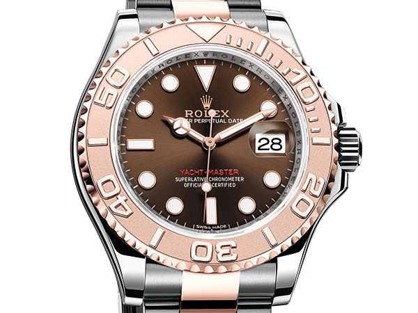 經典的蠔式錶殼,整塊實心不鏽鋼錶殼,以專屬工具將底蓋密旋緊密鎖,結合專利三扣鎖的三重防水錶冠,確保腕錶達到100米防水。而新款Yacht Master最大的改變在於首度採以永恆玫瑰金鋼搭配巧克力色面盤的造型問世,溫潤的色澤,極具特色。