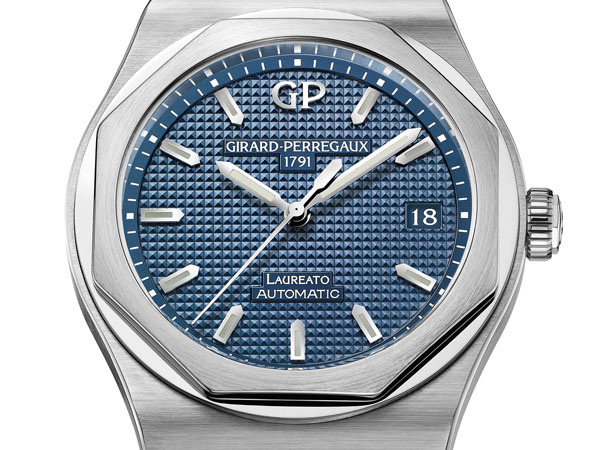 38mm的Laureato可說是尺寸適中的中性錶款,有男錶和女錶的版本,銀灰、岩灰和海軍藍三種不同顏色的面盤,搭配不鏽鋼、不鏽鋼鑲鑽以及玫瑰金材質,還有鍊帶和皮帶的組合。
