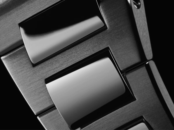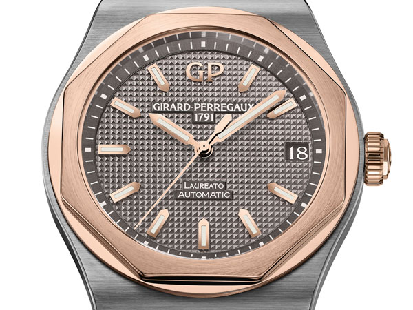 Laureato 42mm的尺寸被設定為男錶,在系列中算是大尺寸的錶款。面盤同樣有銀灰、岩灰和海軍藍三種不同顏色,以玫瑰金錶圈、鍊節搭配鈦金屬錶殼及鍊帶的材質,和岩灰色面盤很互襯。