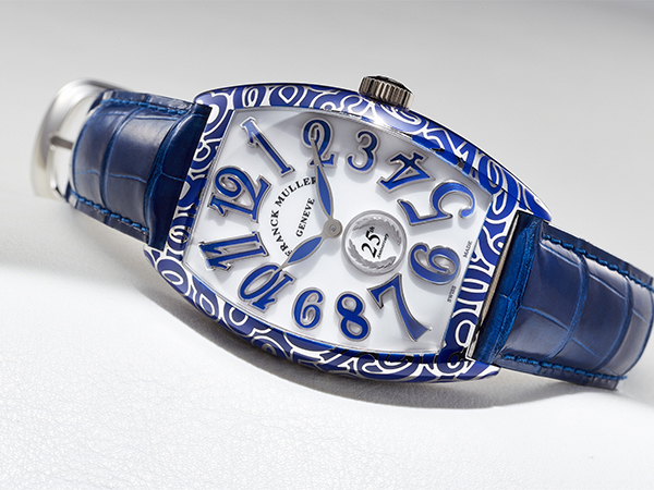 在法穆蘭創立之初,就以圓弧的酒桶形錶殼和巴洛克風格的阿拉伯數字時標引起錶壇的視覺旋風,因此這兩個元素也就成為周年紀念錶的設計基礎。白色琺瑯面盤配以立體阿拉伯數字時標,6時位置有25周年標示。錶殼則是先雕刻出數字凹槽,再覆以藍色陶瓷。另有玫瑰金配黑色時標和黑色陶瓷的版本。內置FM0800自動機芯。39.6 x 55.4 mm/18K白金/參考價NTD 820,000