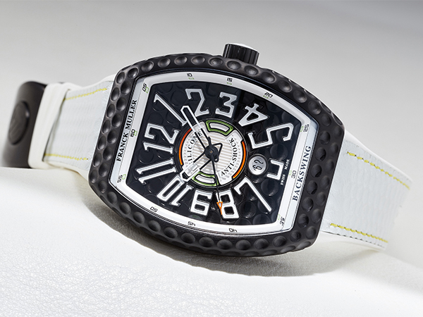 繼去年的男款之後,推出尺寸略小的女性專用高爾夫腕錶,在機芯外環仍是添加了防震矽膠,因此即使戴著錶打高爾夫,也不會因過強的衝擊力道而影響機運作,從錶背可以見到防震矽膠與FM2671自動機芯。32 x 42 mm/PVD鈦金屬/參考價NTD 290,000