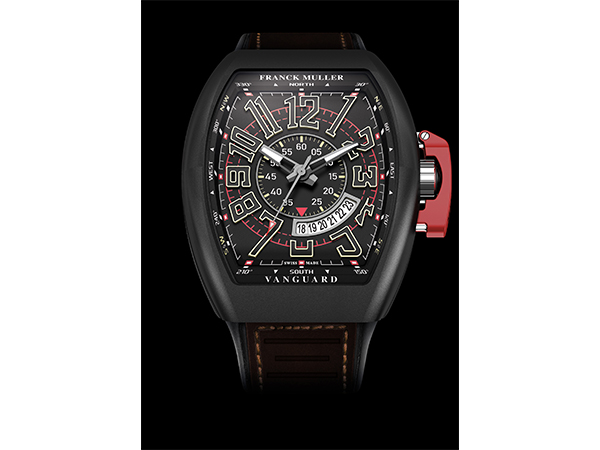 法穆蘭首次將航空概念融入錶款設計,這款腕錶的面盤讓人想到飛機儀表,還有用來鎖定敵機的目標瞄準圈。更引人注意的是紅色的錶冠防護裝置,靈感則來自戰機操縱感上的板機。FM0800自動機芯。53.7 x 44mm/碳纖維/參考價NTD 460,000
