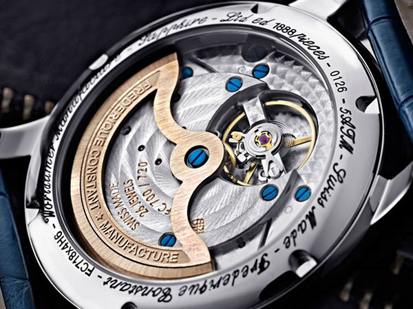 特別值得一提的是在六時位置的日期盤中間以機刻雕花方式呈現,配上深藍色指針,在淺色面盤上更加凸顯。腕錶搭載FC-718自動上鍊機芯,擁有42小時動力儲存,能透過透明底蓋一覽機芯之美!